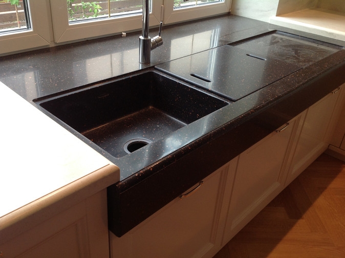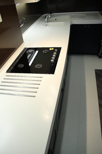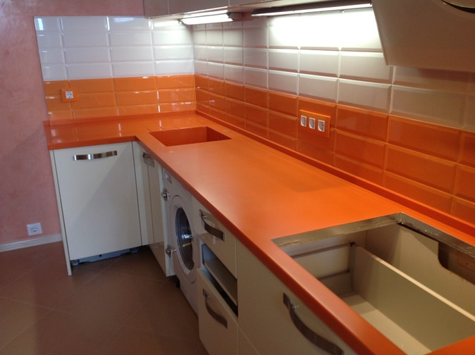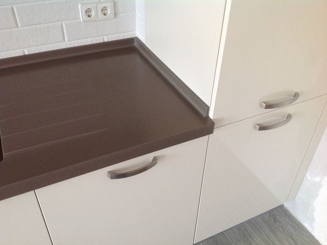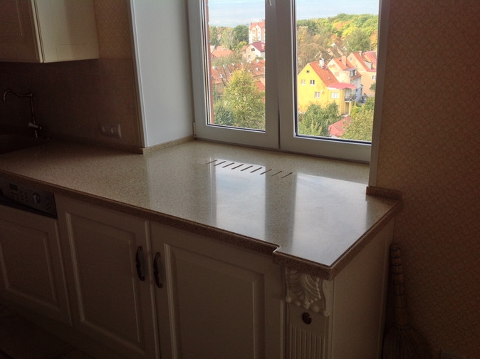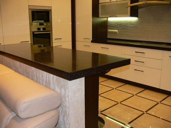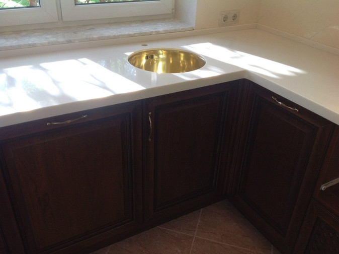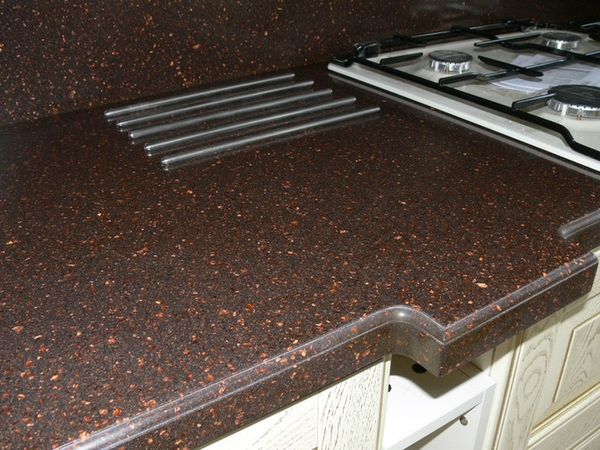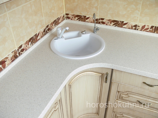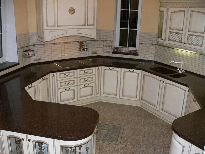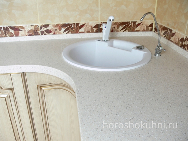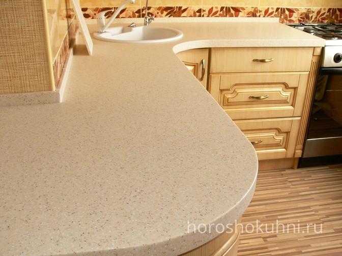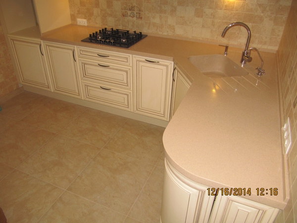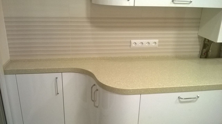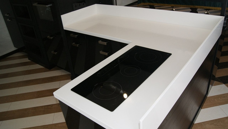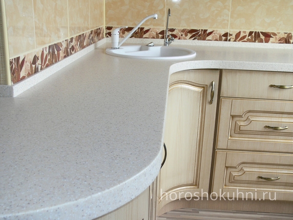 Кухонные столешницы испытывают большую нагрузку в процессе эксплуатации кухонной мебели, поэтому лучше, если они будут выполнены из износостойких и практичных материалов. Одно из решений данной проблемы – каменные столешницы из искусственного акрилового камня. Цена столешницы для кухни - от 12 000 рублей за погонный метр.